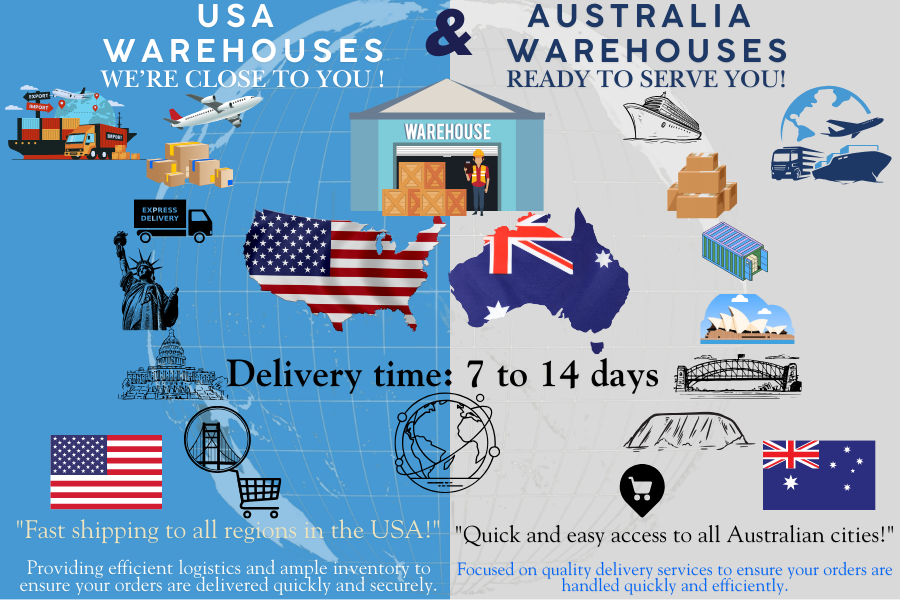 Shipping from: Warehouse in Hawthorne, California, USA OR Warehouse in Moorebank, NSW, Australia