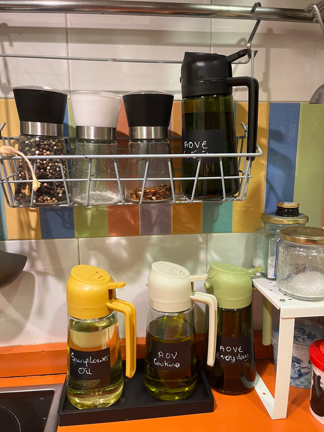 I bought two—one for olive oil and one for balsamic vinegar. They make my kitchen look so organized and aesthetic.