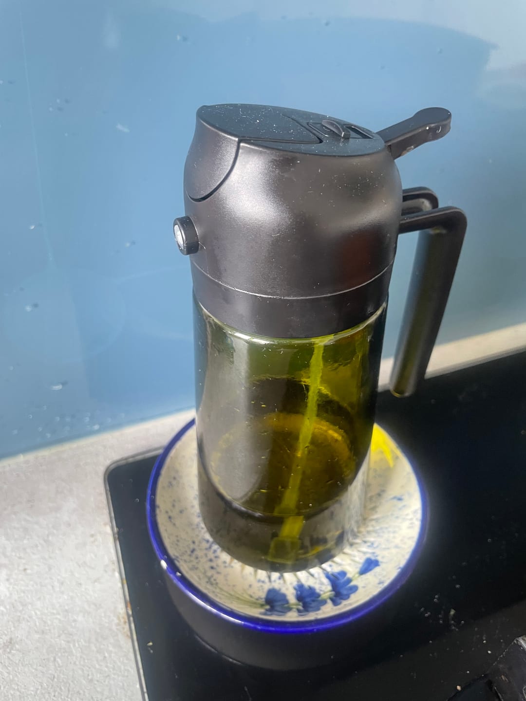 The 2-in-1 feature is brilliant. I can spray my air fryer basket and then pour a tablespoon into my pan without switching bottles. Total game changer!