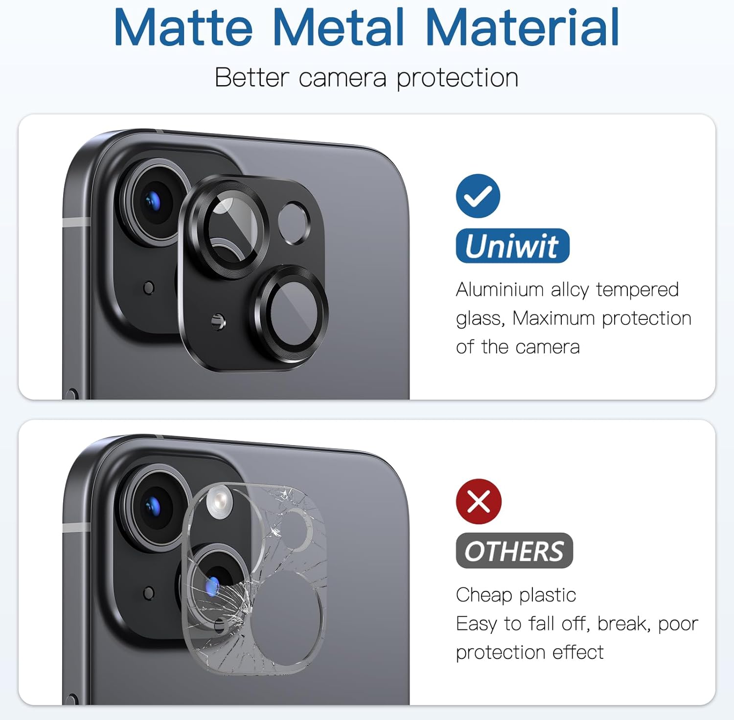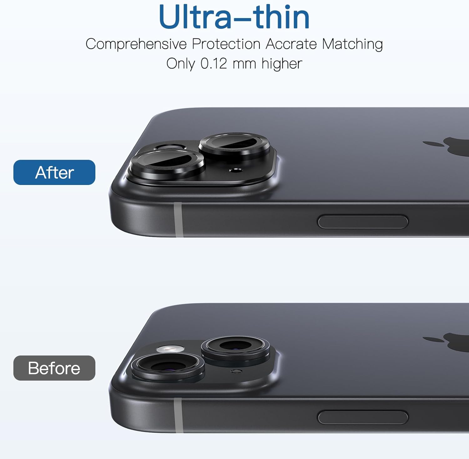 【Upgraded Protection】These lens protector adopts 5 layers unique design, it is made of aviation aluminum and 9H tempered glass,full coverage of the lens,consistently protects your lens screen from scratches, scuffs and impact.Oleophobic layer prevents water, dust, fingerprints. Keep the phone lens in HD transparent and clean all the time.