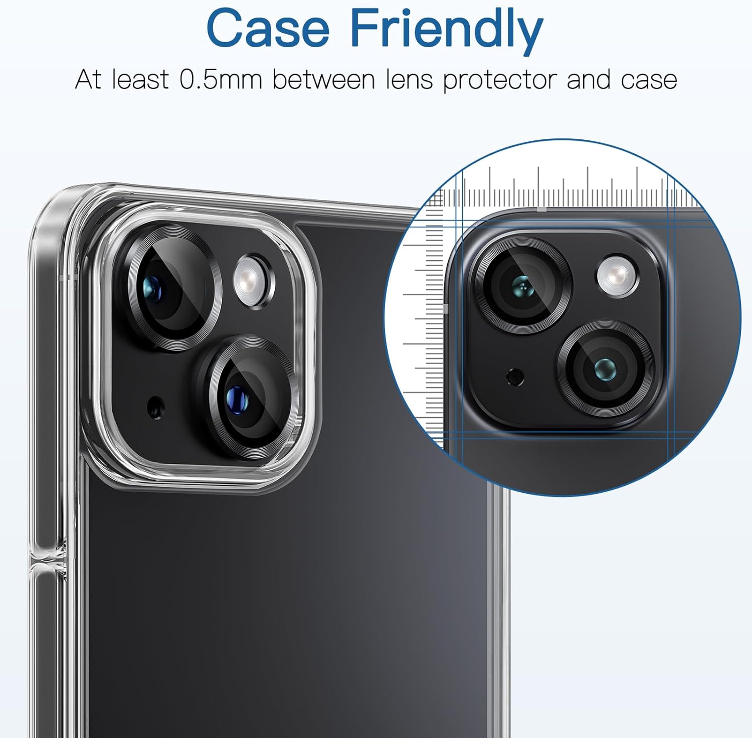 【Case Friendly】The lens protector is ultra-thin, the thickness only increase 0.12mm than before. There at least 0.5mm between lens and phone case, it is enough edge space to fit most iPhone case.