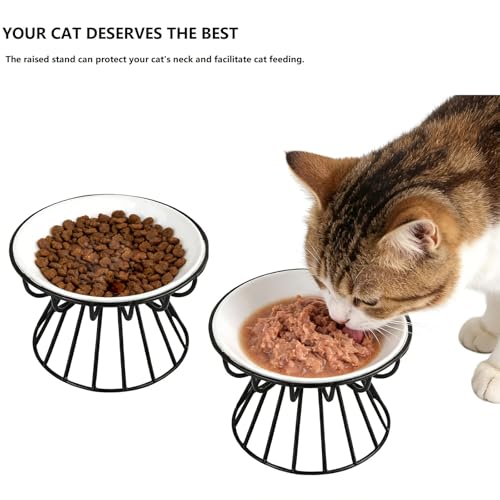 2PCS Elevated Cat Food Bowl, Whisker-Friendly Anti-Vomit Cat Plate, Cats Bowl-Raised Pet Feeder Bowl Stand,Ceramic Elevated Kitten Bowl for Indoor Cats, Kitten, Puppies,Dishwasher Safe