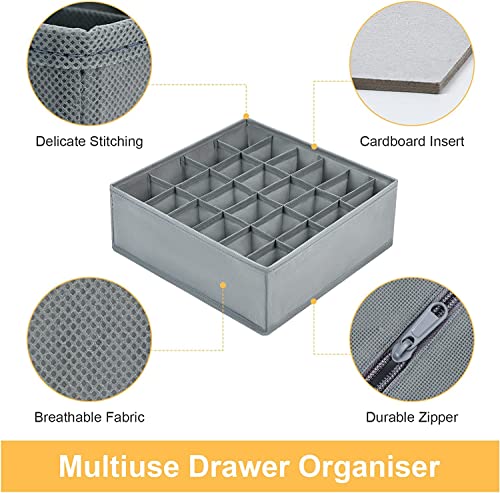 3 PCS Sock Organizer Underwear Drawer Organizer – DIMJ 72 Cell Dresser Drawer Organizer Clothes Drawer Divider Collapsible Closet Organizers Bedroom Organization for Sock, Ties, Belts (Grey)