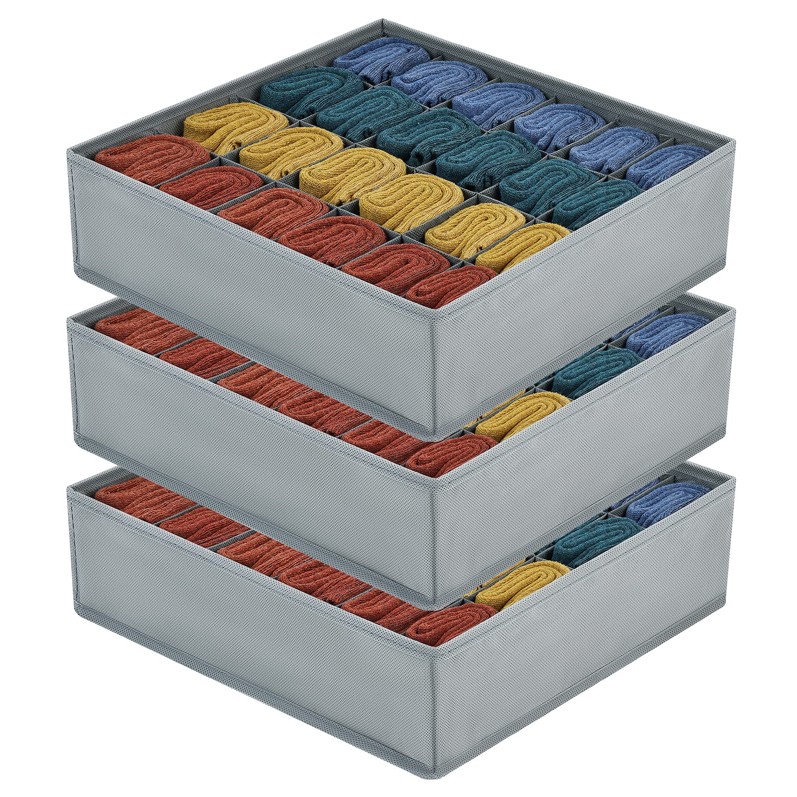 20 reviews for 3 PCS Sock Organizer Underwear Drawer Organizer – DIMJ 72 Cell Dresser Drawer Organizer Clothes Drawer Divider Collapsible Closet Organizers Bedroom Organization for Sock, Ties, Belts (Grey)