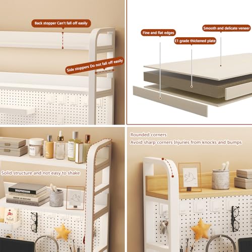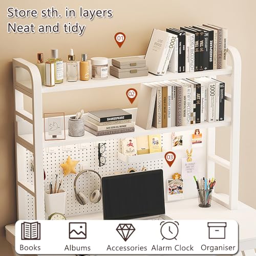 3 Tier Countertop Desktop Bookshelf with Pegboard, Desk Hutch for Computer Monitor, Desk Shelf Organizer for Office, Home, Dormitory