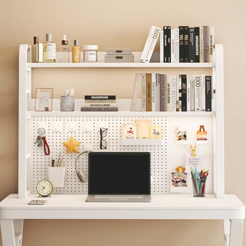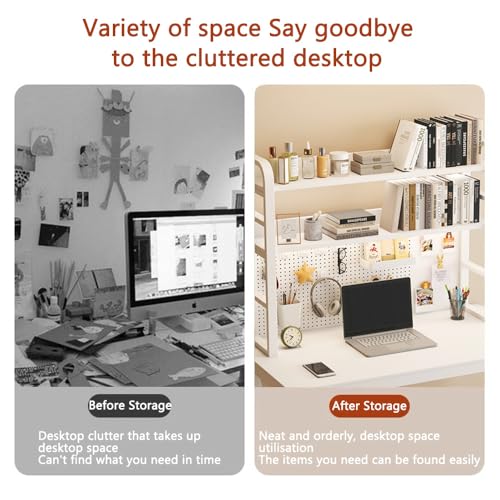 3 Tier Countertop Desktop Bookshelf with Pegboard, Desk Hutch for Computer Monitor, Desk Shelf Organizer for Office, Home, Dormitory