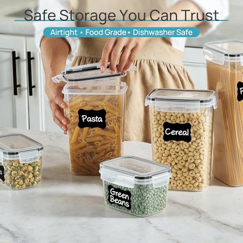 Airtight Food Storage Containers with Lids, Vtopmart 24 pcs Plastic Kitchen and Pantry Organization Canisters for Cereal, Dry Food, Flour and Sugar, Includes 24 Labels,Black