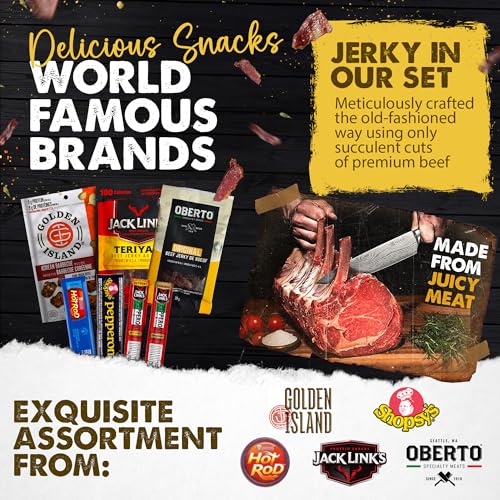 Bulk Snack Packs and Meat Snacks – Gifts for Dad & Gifts for Men – Beef Jerky Snack Box with Pepperoni Sticks – Birthday Snacks for Adults – Gift Includes Jack Links, Hot Rods, Oberto & More