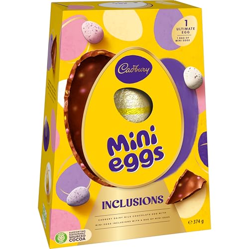 - LARGE CHOCOLATE EGG SHELL: Made with thick Cadbury Dairy Milk chocolate and filled with crunchy micro Mini Egg inclusions