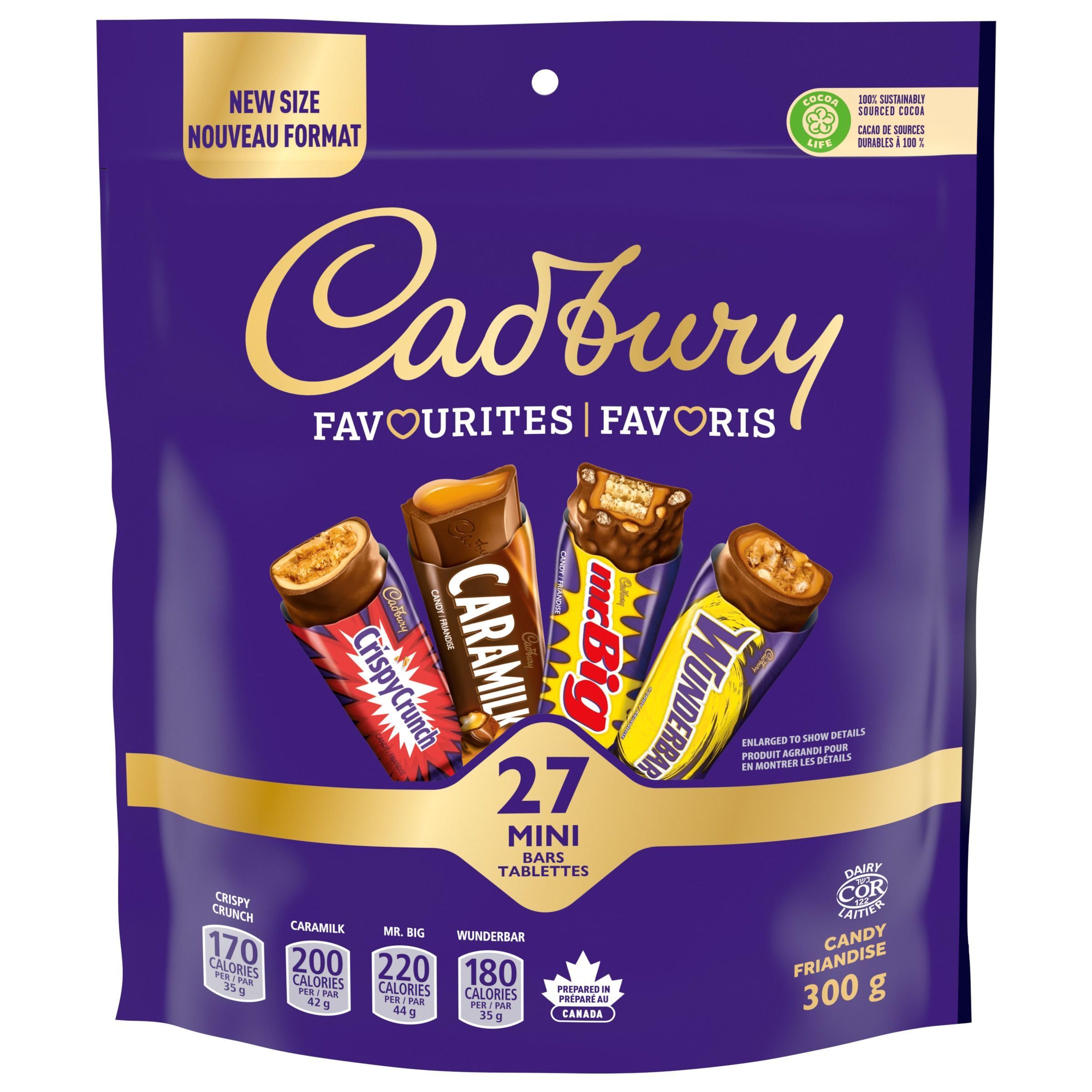 Cadbury Favourites, Pack of 27 Assorted Mini Bars, Individually Wrapped, Snack-Sized, CARAMILK, Mr. BIG, WUNDERBAR, CRISPY CRUNCH, Chocolate Bar, 300g, Prepared in United States