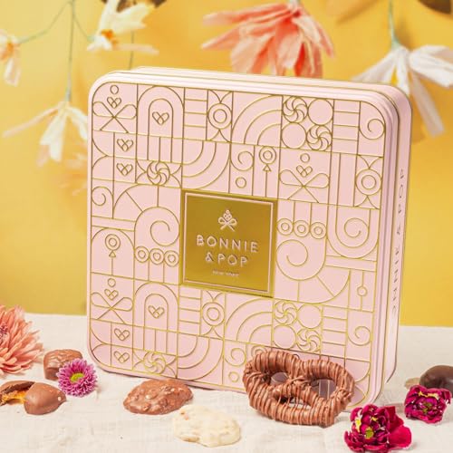 Chocolate Gift Basket – Gourmet Christmas Holiday Snack Gift Box Idea in Keepsake Tin – Her, Mom, Wife, Women, Corporate, Food Set- Bonnie and Pop