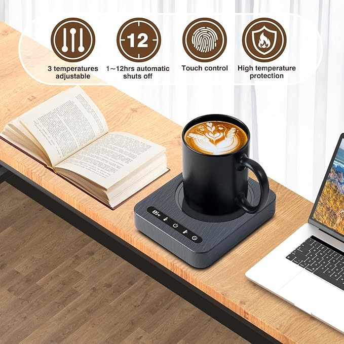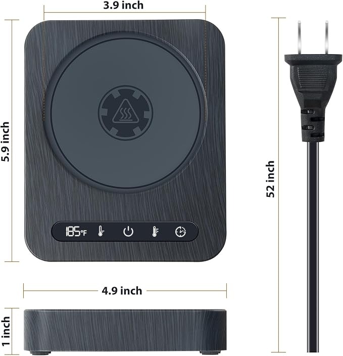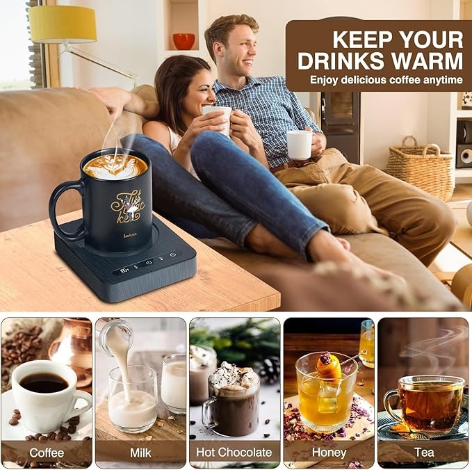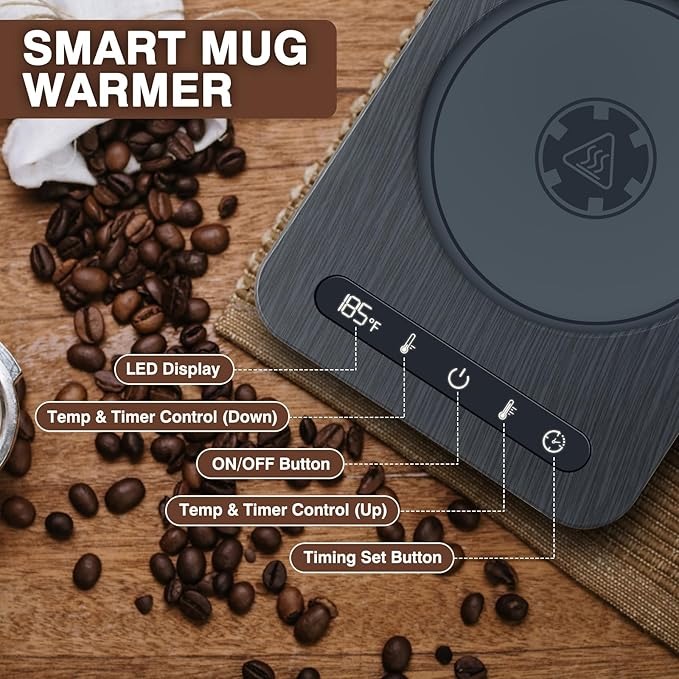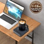 Coffee Mug Warmer,Coffee Warmer for Desk with Auto Shut Off,4 Temperature Setting&1-12H Timer,Smart Cup Warmer for Heating Coffee, Beverage, Milk, Tea and Hot Chocolate(Black Wood Grain)
