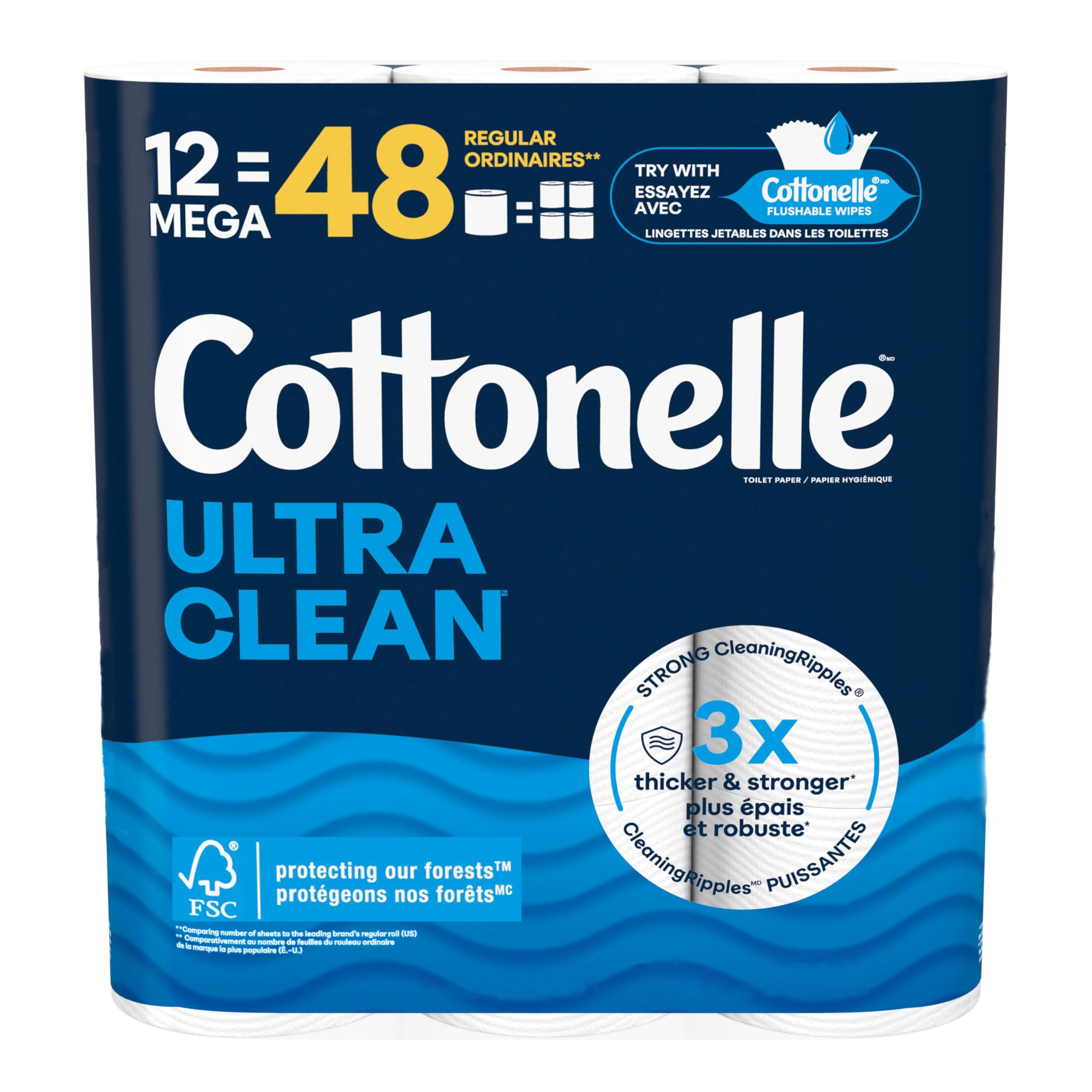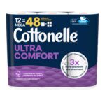 Cottonelle Toilet Paper, 12 Mega Rolls = 48 Regular Rolls, Ultra Comfort, Soft Bathroom Tissue, 244 Sheets per Roll, Packaging May Vary