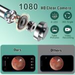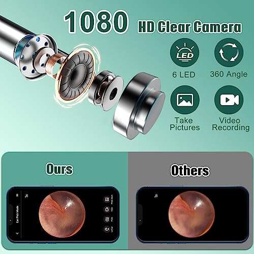 - 【High light led】Equipped with 6 high-brightness LED lights, 3.5mm inner diameter lens with 1080P full HD camera, which greatly enhances the brightness and sharpness of the image in ear canal. Making your earwax removal more completely and safely.