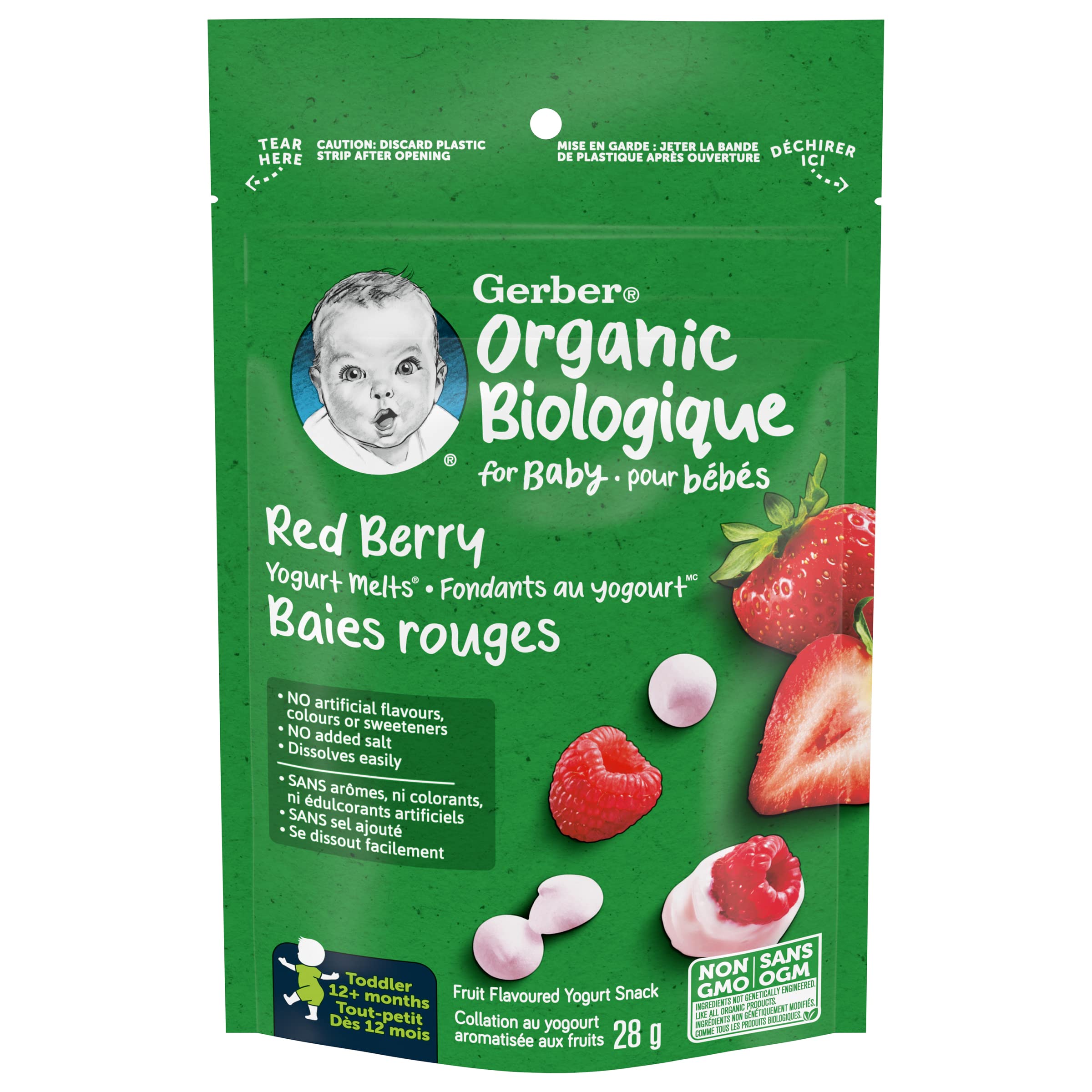 GERBER Organic Yogurt Melts Red Berry,Toddler Snacks, Melts, 12+ Months, 28 g, 7 Pack