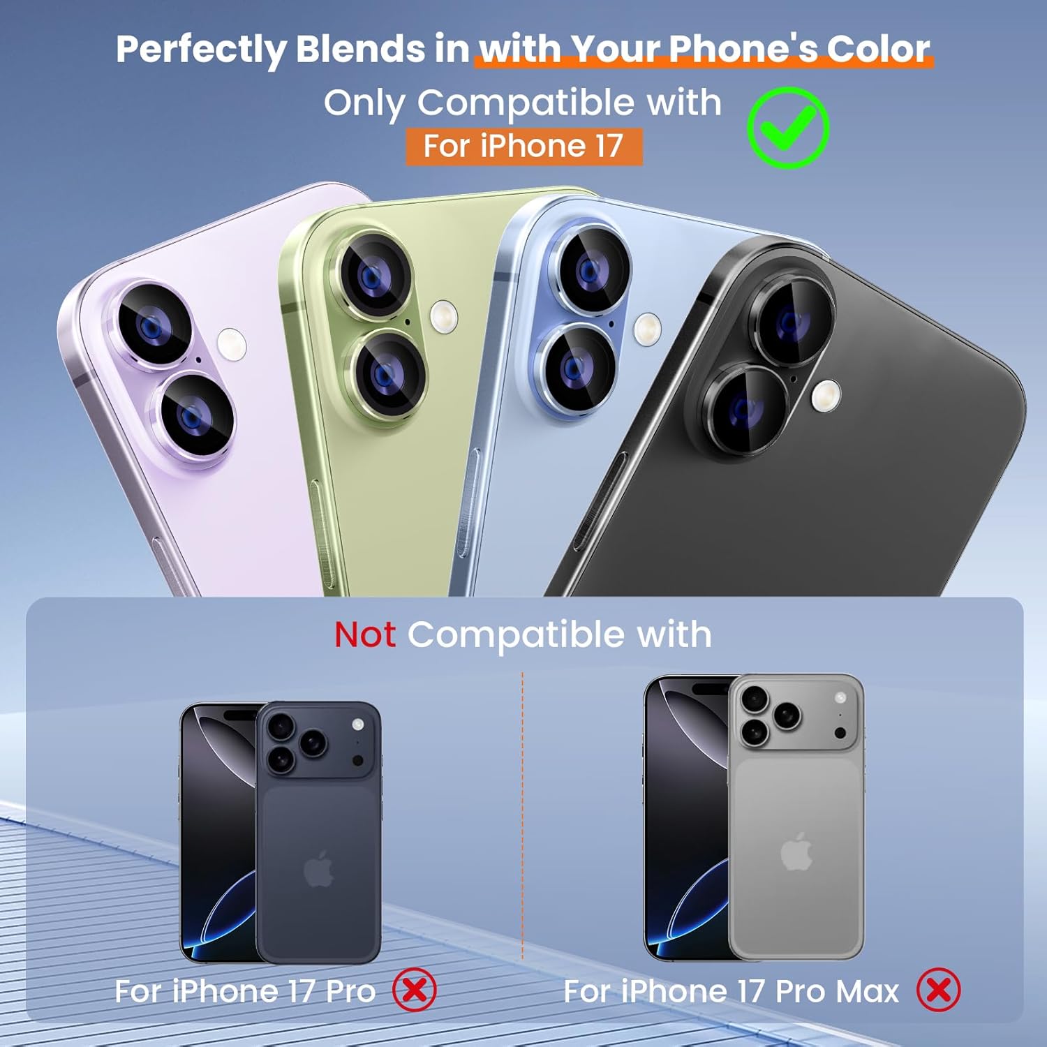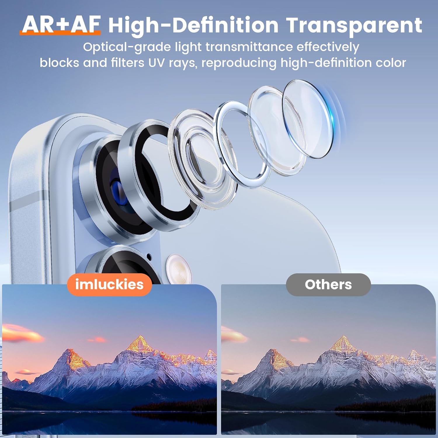 imluckies Camera Lens Protector for iPhone 17 6.3", [AR+AF] HD Clear Tempered Glass Lens Cover, 9H Hardness Scratch Resistant Individual Metal Ring, Case Friendly & Easy Install, Blue