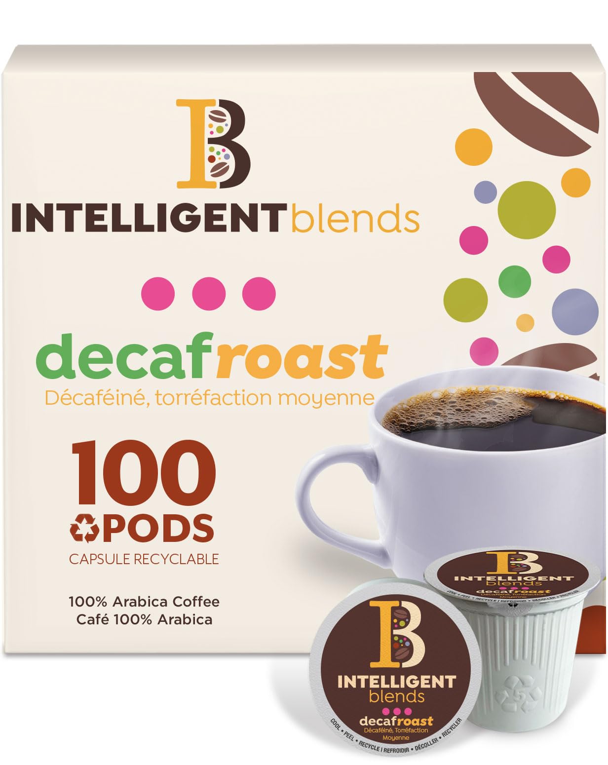 Intelligent Blends Decaf Dark Roast Coffee Pods, 100 ct, Single Serve Pods – 100% Arabica Coffee, Compatible with Keurig K Cups Maker