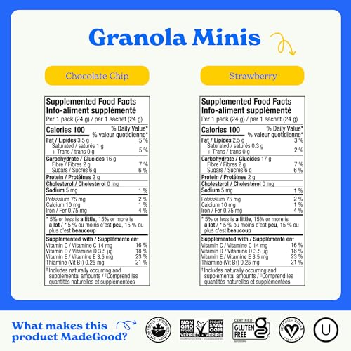 - Amazon Exclusive – 28 bags of granola minis! Enjoy 14 bags of Strawberry Granola Minis and 14 bags of Chocolate Chip Minis.