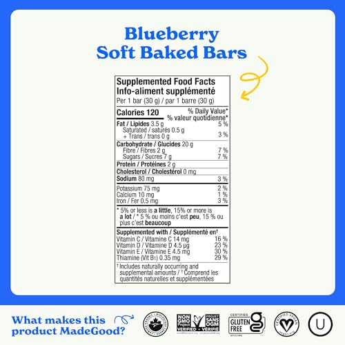 MadeGood Mornings Soft Baked Breakfast Bars, Blueberry, 30g (30 Count) Gluten Free Snacks