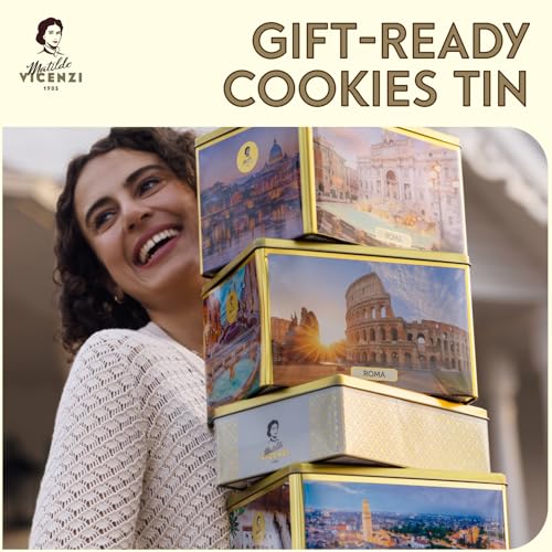 Matilde Vicenzi Roma Cookie Tin – Italian Pastries & Cookies in Individually Wrapped Trays – Bakery Dessert Gifts For Valentine’s, Easter and Every Occassion – Puff Pastry, Assorted Cookies in Italian Design Gift Tin 32.5oz (920g)