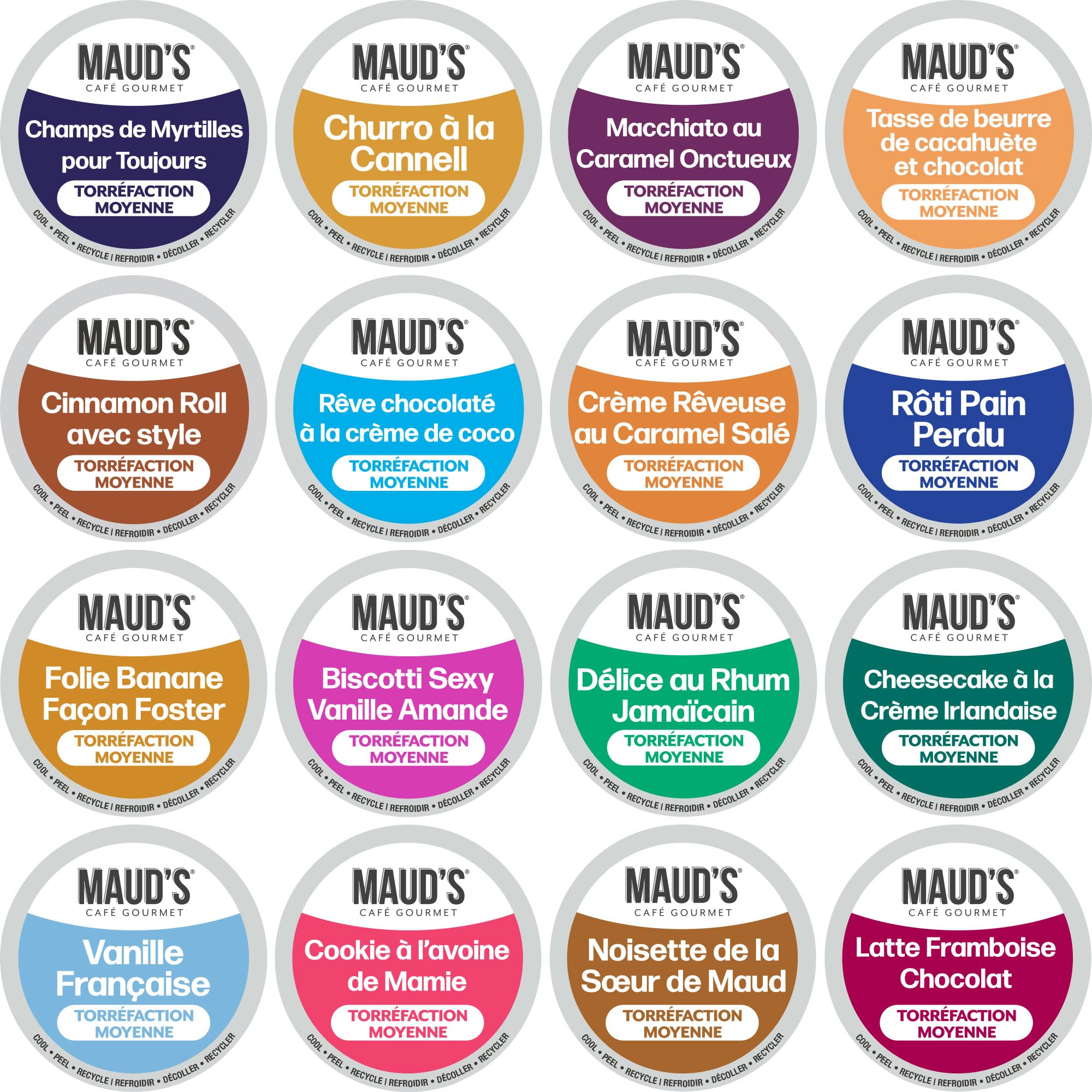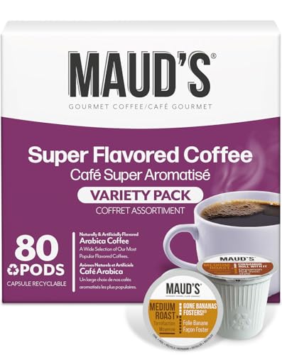 Maud’s Super Flavored Coffee Pods Variety Pack, 80 ct, 16 Assorted Flavors, Medium Roast Flavored Coffee in Single Serve Pods – 100% Arabica Beans, Compatible with Keurig K Cups Maker