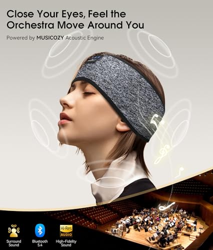 MUSICOZY Bluetooth 5.4 Sleep Headphones Headband, Wireless Sleeping Headphones Sleep Mask Earbuds IPX6 Waterproof for Side Sleepers Workout Running Insomnia Travel Yoga Cool Tech Gadgets Unique Gift