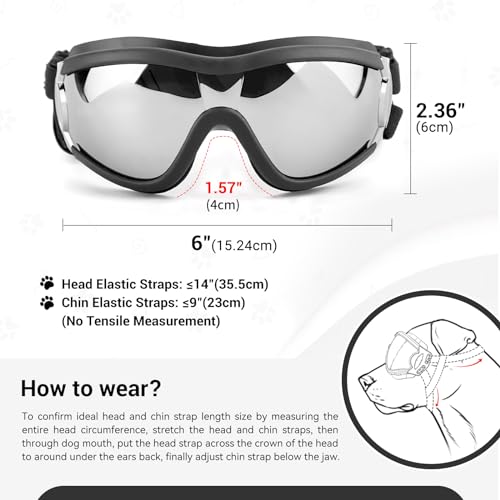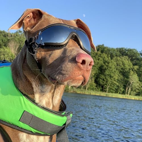NAMSAN Dog Goggles Large Breed, Anti-UV Dog Sunglasses for for Medium to Large Dogs, Windproof Summer Dog Eye Protection, Winter Snow Dog Goggles, Adjustable, Black