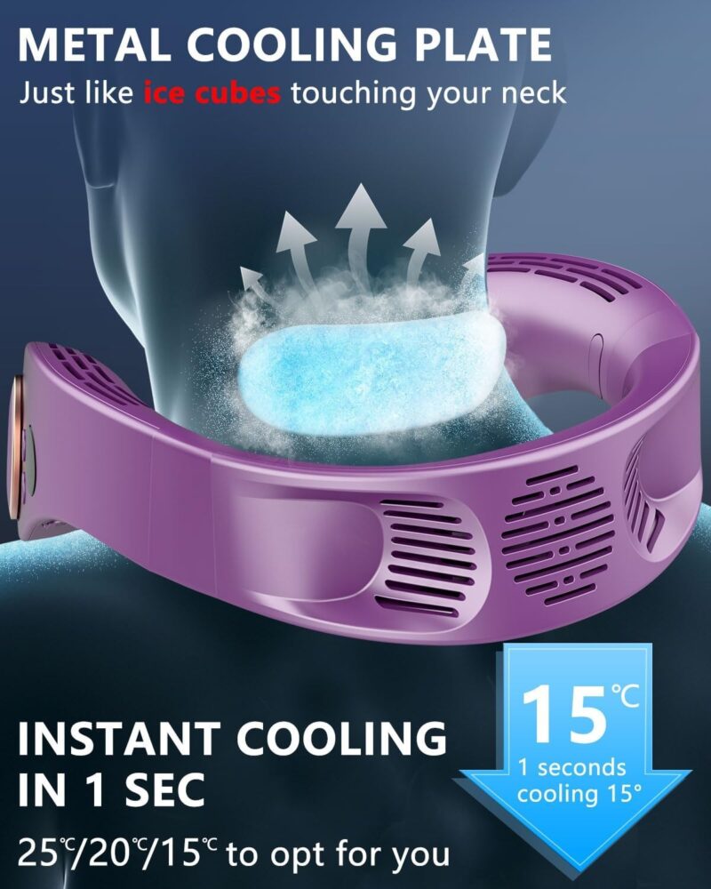 - 1S Rapid Cooling: The cooling plate in the neck fan provides instant cooling, rapidly lowers the temperature around your neck in 1s,much like an air conditioner.