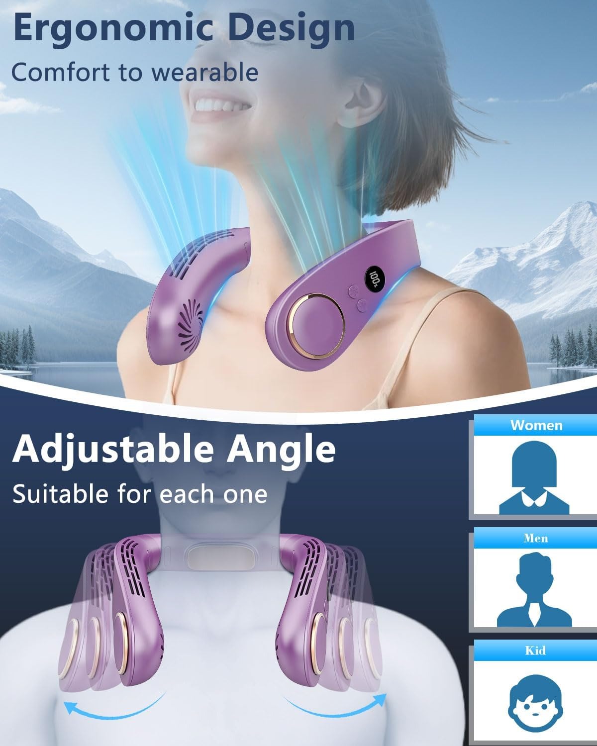 - Adjustable Angle: Neck cooling fan can be easily adjusted to different angles, ensuring a comfortable fit for various individuals.