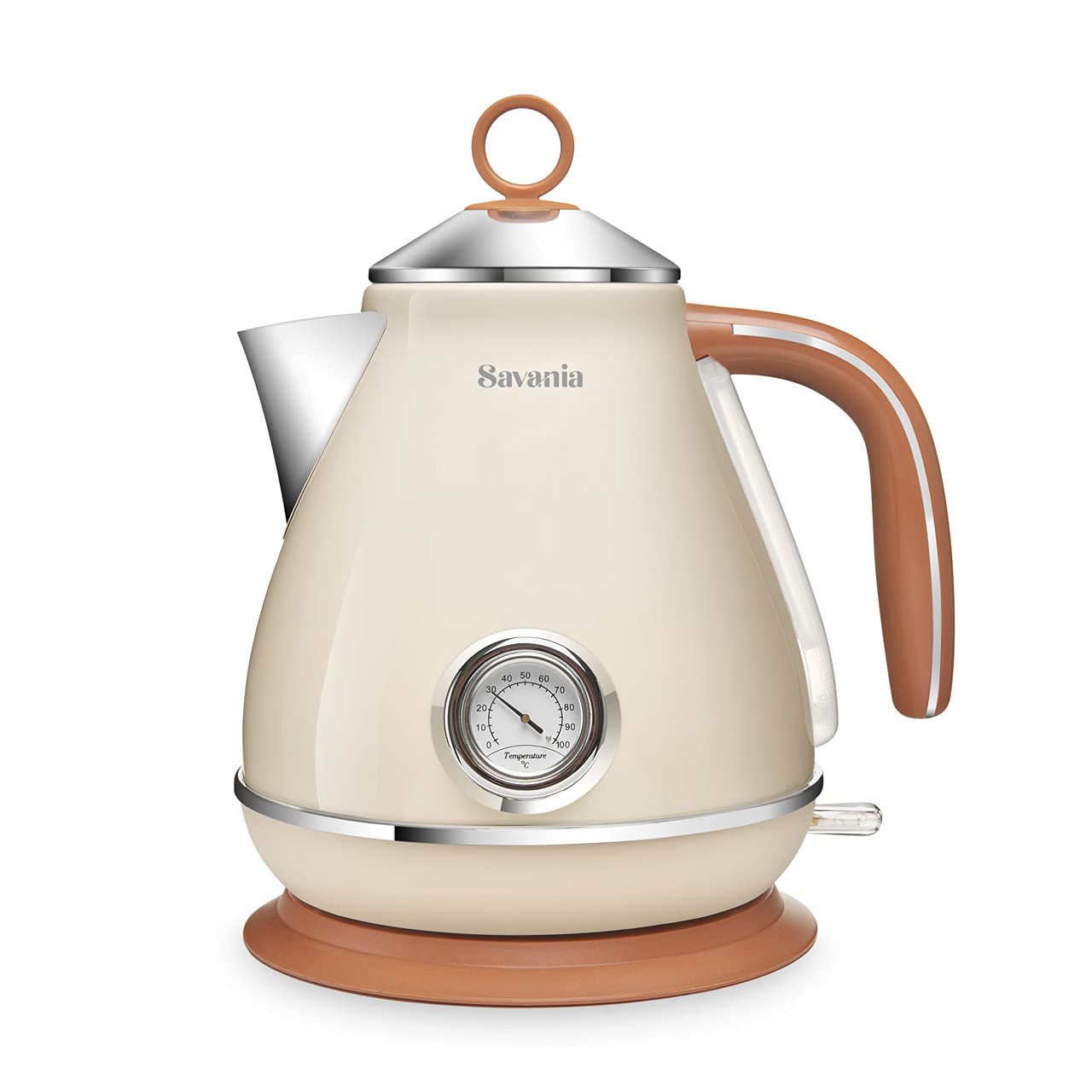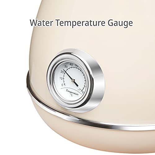 Savania 1.7L Vintage Electric Kettle with Temp Gauge & Auto Shut-Off, ETL Certified (Beige)