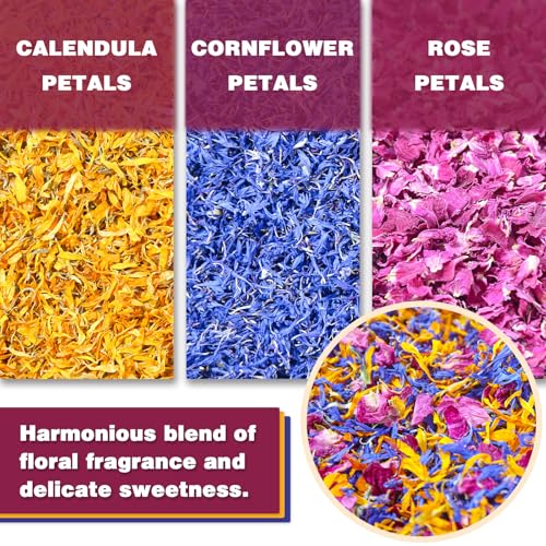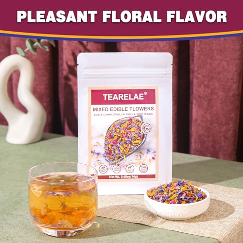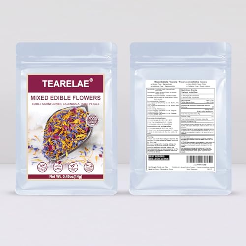 TEARELAE – Mixed Edible Flowers – Premium Rose, Cornflower, and Calendula Petals – Edible Cake Decorations – Pure Natural – Caffeine-Free – for Drink, Tea, Salad and Soap – 0.49oz/14g