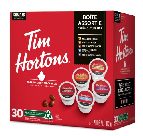 Tim Hortons Variety Pack, Original, Dark Roast, Colombian, Bold Roast and French Vanilla, Single Serve Keurig K-Cup Pods, 30 Ct