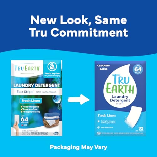 Tru Earth Compact Dry Laundry Detergent Sheets – Up to 128 Loads (64 Sheets) – Paraben-Free – Original Eco-Strip Liquidless Laundry Detergent, Laundry Sheets – Fresh Linen